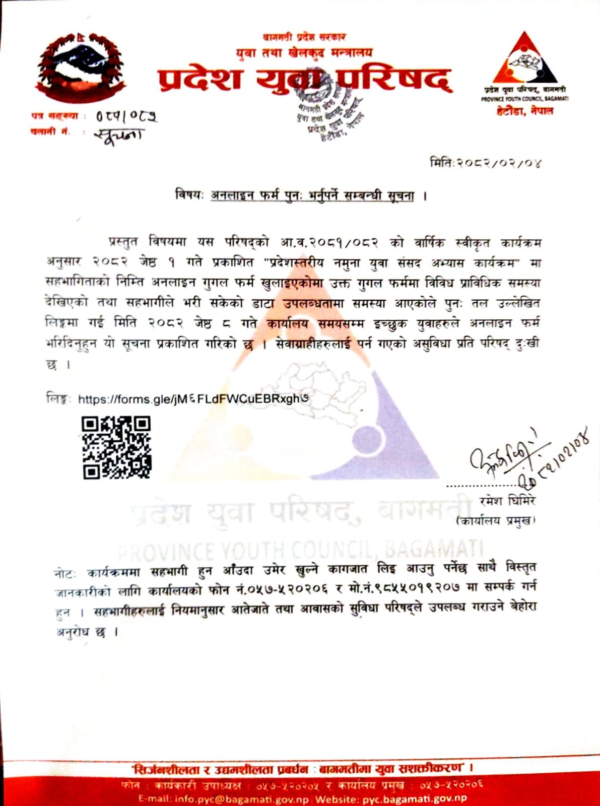 अनलाइन फर्म पुन: भर्नु पर्ने सम्बन्धी सूचना ।