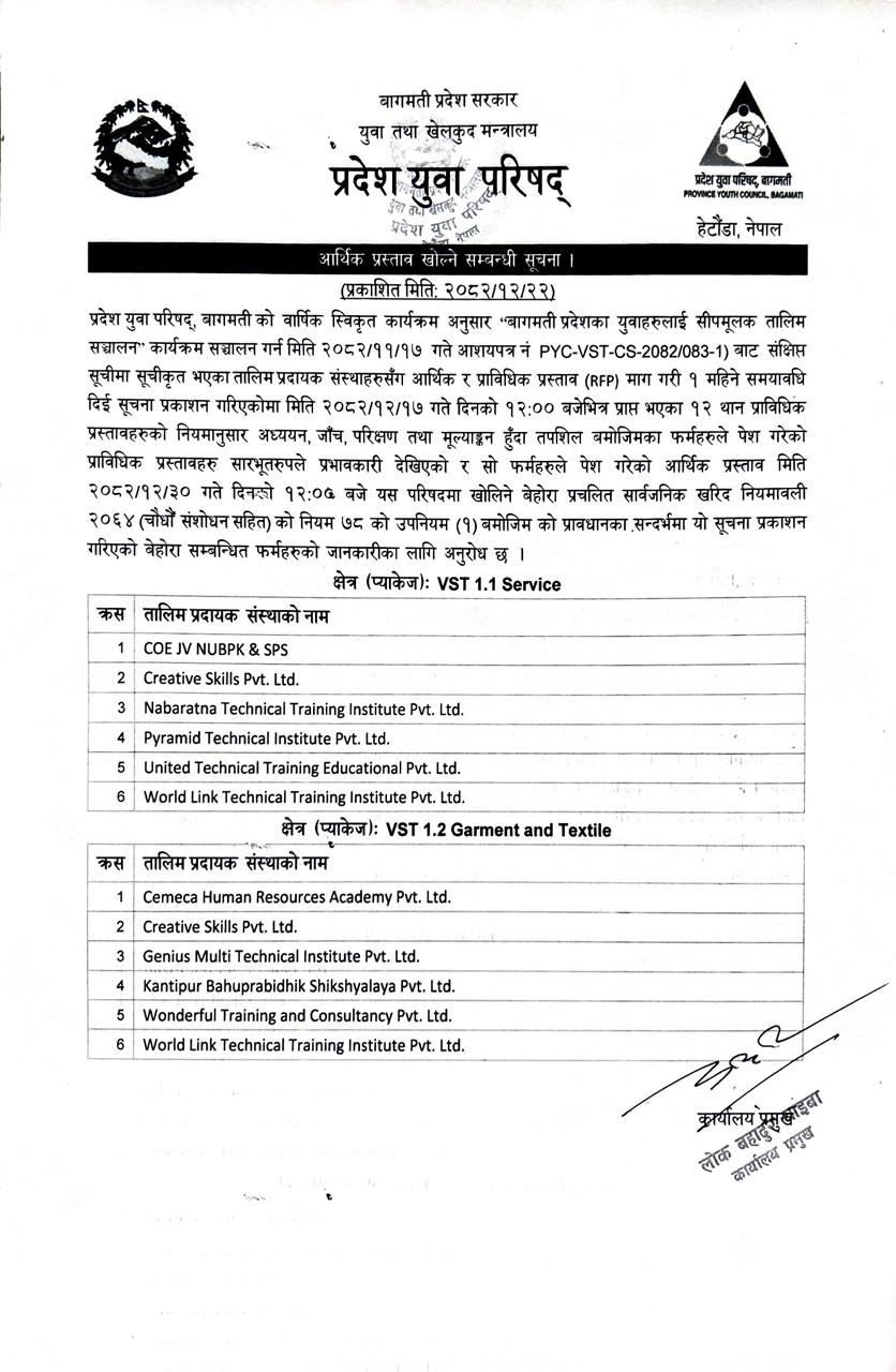 आर्थिक प्रस्ताव खोल्ने सम्बन्धी सूचना ।