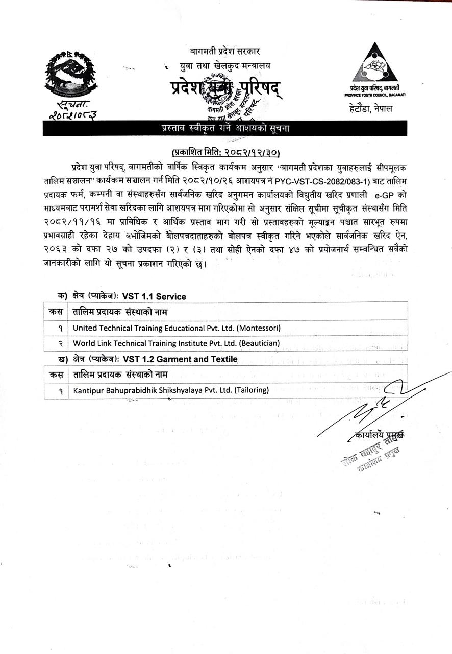 प्रस्ताव स्वीकृत गर्ने आशयको सूचना ।