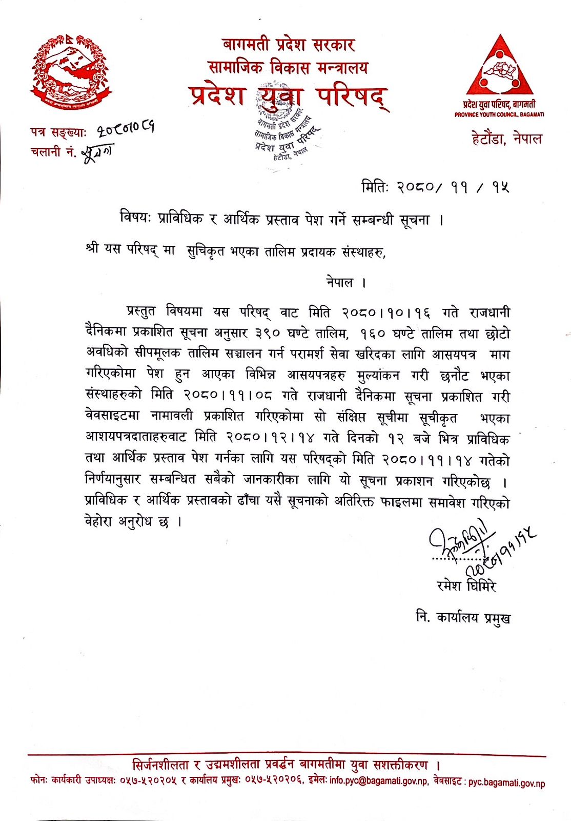 प्राविधिक र आर्थिक प्रस्ताव पेश गर्ने सम्बन्धी सूचना